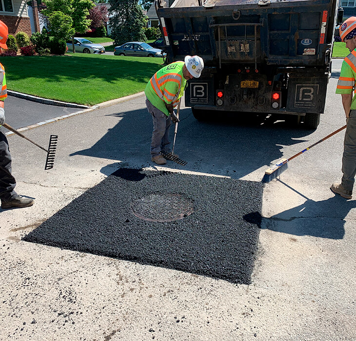 Manholes are everywhere and they require maintenance. Casting repairs must be performed for many reasons, including when the masonry collars holding them up at street level fail, when castings become outdated, or when the grade of the street is being changed. All of these situations become complicated because the traffic must be maintained safely. As part of our casting repair work, the street we are working on must be restored to the specifications and satisfaction of the municipality that owns the road. Bancker performs all of this work “in house” including the sawcutting and the paving.